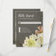 Matching RSVP Response cards to return by mail with white envelopes at no charge. Bold. Elegant. Modern. Stunning retro style yet modern painterly flowers against a deep charcoal grey background. This design was hand painted and graphically designed by Audrey Jeanne Roberts to work with this trending colour palette. Perfect for summer, fall or autumn weddings without being predictable and over done. Delightfully informal and yet elegant with beautifully crinkled petals and a pincushion style centre in a warm lime green. Colours are soft creamy white, blush pink, coral and yellow green.