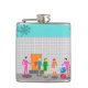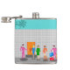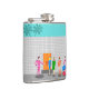 Vous êtes invité à l'événement social de l'année avec cette Atomique Palm Springs Stewardess Party vinyle flask design. Joignez-vous à ces trois hôtesses de l'air vintages qui rivalisent avec les compagnies aériennes pour accéder à leur kitschy 1960's breezy block hotel. L'un des clochards fabuleusement accrochés dans un uniforme rose chaud rétro tient la porte orange tandis que l'autre lutte avec les bagages des femmes. Des palmiers turquoises s'élancent dans l'arrière - plan d'un ciel turquoise improbable alors qu'un jetliner vole au-dessus. Ce design vous fera dire : "Sur votre marque, jet set, allez !"