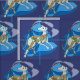 Marker pen and gel pen drawing of an Italian Greyhound in an Art Deco style. The two toned silver and gold dog is resting on a two toned blue pillow and set over a background of two shades of blue. The art deco effect is created by it's two toned appearance. The black scribble lines running throughout the dog and running into it's background were created by my three year old daughter, who likes to help me with my art. These scribbles worked as a guide to filling in the Italian Greyhounds colour. Italian Greyhounds are a small breed of greyhound. This print is set in off set rows of tiles.