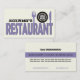 Restaurant text design with cutlery and plate eye-catching business cards. A cool business card template, featuring the word RESTAURANT, the owner’s name, a plate, a fork and knife in lavender purple and black on ivory background. You can upload your logo on the plate, add your monogram or delete it.