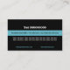 Restaurant text cutlery plate eye-catching business cards. A cool business card template, featuring the word RESTAURANT, the owner’s name, a plate, a fork and knife in turquoise blue and white on black background. You can upload your logo on the plate, add your monogram or delete it.