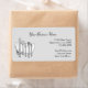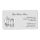 Custom restaurant themed labels with a set of silverware on a table napkin in black and white with room for your name in script and address in retro serif custom white text on light grey, or customize this design to change fonts, background colours, add your logos, and more, even save your design for later.