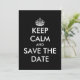 Restez calme et sauvegardez les cartes mariage date. Cartes de rappel amusantes pour les invités. Modèle moderne design avec logo couronne. Idéal pour les événements mariages et autres.