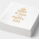 Restez calme et faire la fête sur des serviettes Foil exclusives en or. Serviettes fantaisie pour l'événement du Nouvel An, fête d'anniversaire, anniversaire, réception de mariage, etc. Argent et feuille de bronze disponibles également. Typographie moderne avec couronne princesse.