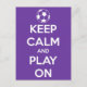 Restez calme et jouez sur une carte postale violet