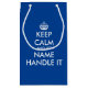 Restez calme et laissez-le manipuler drôle sac cadeau bleu. Typographie moderne avec couronne. Couleur bleue ou personnalisée. Amusant pour des cadeaux personnalisés uniques. Idéal pour Anniversaire, Vacances et plus encore.