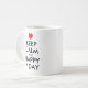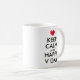 Restez calme et tasse à café Heureuse Sainte-Valentin. Coupe mignonne au coeur rouge. Restez calme et continuez à mème avec peu de coeur. Humour de typographie de la Saint Valentin. Une idée de cadeau amusant pour petit ami ou petite amie amoureuse.
