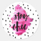 Police de brosse guillemet personnalisé "rester chic" sur une brosse d'aquarelle rose chaud avec pointillé noir sur blanc arrière - plan