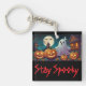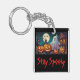 Restez Éffrayant, joli design Halloween avec un fantôme caricatural et des citrouilles ludiques. Illustration vibrante et fantaisiste pour célébrer la saison avec une touche d'humour.