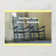 "Retired and Still Rocking" postcard, two blue rocking chairs on the front porch. Great way to announce a retirement party.