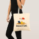 These bags were super cute (I purchased 3). The material is more of a canvas look & feel. The colour of the bag is slightly off white, but the letters look exactly as pictured. I took 3 photos in different lighting. Would recommend! I liked how there was an option to choose the font and colour of the name. The words are legible and the colours are exactly as pictured.