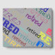 Customizable Retirement Party guest book with repeating word "retired" as (transparent) background image. Half transparent white tag for your text (font, size, colour and position are customizable). You can easily change size, orientation of the design and change background colour by clicking the personalize or customize button. Available in spiral notebook. Matching Retirement invitation and greeting card.