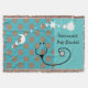 Retired Medical Professional Nap Blanket, blue and brown polka dots, black stethoscope with moon and stars design.
