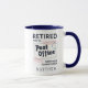 Cute retirement postal worker coffee two-tone mug for your coworker or boss who's retiring after many years of excellent service. The design is modern and the wording says "Retired from the Post Office. Every Hour is Happy Hour"