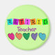 Retired Teacher gifts, t-shirts, mugs, tote bags, cards, buttons, keychains, aprons, stickers and mousepads. Adorable bright coloured hearts design.