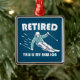 You're retired and the only work you have to do is to go skiing. This great design has a skier with bold text.