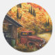 Retired truck by garage painting by David Paul. Fall colours with blue sky on customizable products