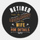 Retired Under New Management See Wife Retirement Classic Round Sticker