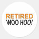 Retired! Woo Hoo! Funny saying on t shirts, stickers, mugs and more. Original design.