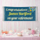Perfect banner for your retiring co-worker, boss, or friend. A blue background with confetti stars personalized with the retiree's name.