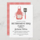 Fire up the grill and get ready to honour a life well-lived with our Retirement BBQ Party Invitation, the perfect choice for anyone planning a casual, festive farewell celebration with smoky flavour and heartfelt memories. This fun and charming design features a BBQ apron and grilling spatula illustration, instantly setting the tone for a laid-back, outdoor barbecue gathering. Whether you’re hosting a summer cookout in the backyard, a rustic countryside celebration, or a picnic-style retirement party in the park, this invitation delivers the perfect mix of warmth, personality, and classic BBQ charm. The back side of the card includes a vibrant red chequered background, reminiscent of picnic blankets and family-style gatherings, tying the theme together with timeless detail and visual appeal.