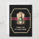 A classy, stylish and elegant design of a vintage bottle of sparkling wine framed by faux gold ornate swirls is set against a burgundy and gold band that is framed by a golden scallop frame. The back has the same elegant bottle of bubbly and templates for your personalised wording. These are ideal for any special celebration whether it be a business event; graduation; retirement; reunion; birth announcement, New Year party or other milestone event.