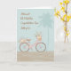 This pretty retirement card has an illustration of a bicycle with flowers in the basket and on the back, a palm tree, painted ground and has a light green background. Thanks to the hungryjpeg and Horhew for some of the elements in the design.