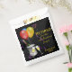 Stylish retirement party favour bag featuring a ice bucket , bottle of bubbly sparkling wine flute glasses and balloons with a black background and the typography in dark yellow/ gold colour " Let the celebrations begin". This would make a fabulous party accessory for a retiree coworker or friend. All text can be customize by amending the titles and quote then personalize by amending the name and date . Background colour can be amended if needed but also available in purple and blue.