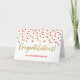 Congratulations card for retirement with gold and red modern confetti pattern.