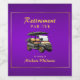 Make a statement with our simple yet refined retirement party wine labels. Perfect for the golf enthusiast bidding farewell to the corporate world, our design seamlessly blends class and whimsy. The golden accents complement the sophisticated dark purple background, while the graphic of a golf cart adds a playful touch. All the text is easy to customize.