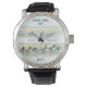 This Enjoy Your Day Happy Birding! watch makes a unique retirement gift and keepsake for your husband, a special friend, and anyone who loves birds and bird watching. From an original watercolor painting of Canada geese at Slimbridge Wetland Reserve. The geese are renowned for their V-shaped flocks that accent spring and fall skies and are one of our most abundant North American and UK waterfowl species. Can be personalized on the front with the recipient's name and you can alter the message.