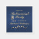 Celebrate a distinguished career with our Elegant Formal Retirement Party Napkin! Featuring "Retirement Party" in a graceful script font, this design includes two golden champagne glasses against a sophisticated blue background. The text is elegantly highlighted in golden shades, with a stylish curly ribbon between the details. Perfect for family or corporate organizers, this customizable invitation allows you to easily add name making it a comprehensive choice for a memorable send-off.
