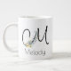 Retirement gift employer monogram watercolor Giant Coffee Mug. Not all mugs are created equal. This one? It tells a story. A story of calm, of simplicity, of new beginnings. Featuring an elegant monogram and soft botanical artwork in pastel tones, it makes a thoughtful gift for anyone closing one chapter and beginning another.