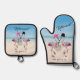 Retirement looks good on us! Flamingo on Beach Oven Mitt & Pot Holder Set