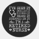 Retirement Nurse Seen Smelled Touched Classic Round Sticker