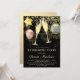 A Retirement party invitation featuring champagne glasses, balloons and gold glitter, gold on black. Faux gold foil on the the back of the invite.
