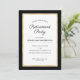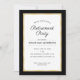 This retirement party invitation offers a sleek professional layout with a black and gold border. Custom text allows you to add your retirement party details.