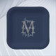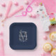What a wonderful, personalized paper plate for a Happy Retirement Party. Background is navy blue, monogram is grey, name is white. Choose square or round. All Rights Reserved © 2024 Alan & Marcia Socolik.