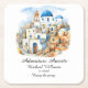 Retirement Party Colourful Greece Village Ocean Square Paper Coaster