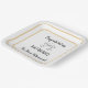 Add some extra custom chic to your retirement party tables with these square paper plates. The plates display the message 'Congratulations On Your Retirement' in script typography, and can be personalized with a name. Two elegant glasses of sparkling champagne are pictured for a celebratory look. The design is mostly white, with black text and a double faux gold border around the edge.
