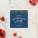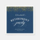 A party napkin perfect for any retirement party. The design offers a stylish design accented with elegant script text and gold glitter confetti on a navy blue background.