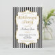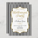 An elegant retirement party invitation featuring black and white stripes with faux gold glitter accent frame and black and gold text. This sophisticated and stylish retirement invite is a fancy way to honour that soon to be retiree and professional. For a surprise version, simply click the Customize button and add a line of text at the bottom that says "Shhh...it's a surprise!"