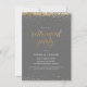This elegant and festive retirement party invitation features gold (simulated foil) confetti with matching letters that say "Retirement Party" in an beautiful script font. The background colour is a shade of grey, but can be changed to any colour of your choice. Customize the invite with your own information - an easy and simple way to create a personalized card. The back side of the card features a matching gold dotted line pattern - with a white background that can be customized to any colour of your liking. A simple and elegant way to invite guests to celebrate a retirement.
