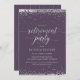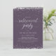 This elegant and festive retirement party invitation features silver (simulated foil) confetti with matching letters that say "Retirement Party" in an beautiful script font. The background colour is a shade of purple, but can be changed to any colour of your choice. Customize the invite with your own information - an easy and simple way to create a personalized card. The back side of the card features a matching silver dotted line pattern - again with a purple background that can be customized to any colour of your liking. A simple and elegant way to invite guests to celebrate a retirement.