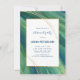 This retirement party invitation features a background originally created from oil pastels that blends shades of green and blue to create an organic, abstract design. A gold (simulated foil) frame surrounds the main content and matching gold diagonal strokes accent the background. The text and back of the invite are shown in a shade of navy blue, but can be changed to any colour of your choice. Easily change the text to personalize these invites for your special event.