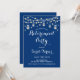 Rustic style design in navy blue and white. Features script font and fairy string lights. Message me if you need further customization.