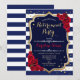 Elegant navy blue white red design with faux glitter gold. Navy and white stripes with red roses. Perfect for an elegant retirement party.