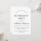 A simple black and white retirement party invitation: just black text on white background.