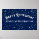 Happy Retirement text on a dark blue background with stars. Change the name to the lucky retiree's name. Put this sign outside of whichever room you are holding the party in so guests will know they're in the right place.