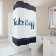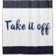 Élégant, élégant et juste la bonne quantité d'humour clair sur ce rideau de douche "Take it off" cool avec lettrage bleu profond.